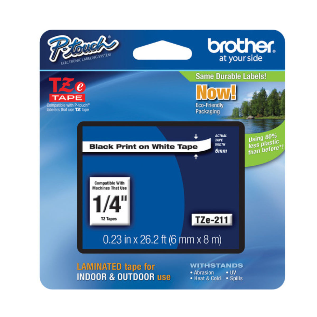 BROTHER TZe-211 Black on White Laminated Tape for P-touch Label Makers