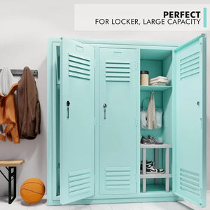 Rakabot LOCKER1 stackable plastic shelf keeps your locker clean, dry and organized. The ideal solution for students, athletes and workers. Protects the locker against rust. Built for tiny spaces.