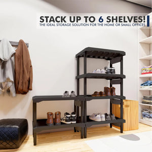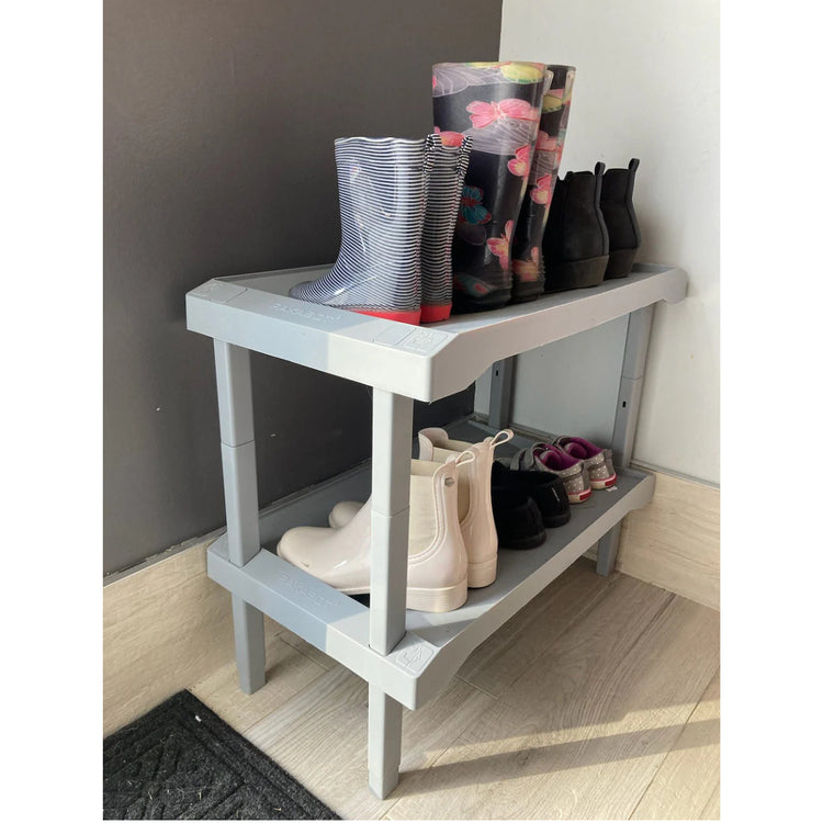 Stackable self-draining and water collecting Plastic Shoe and Boot Winter Rack - Convenient and Affordable. The ideal storage solution for the home or small offices. Robust, light and easy to assemble. The perfect replacement for boot trays that end in landfills.