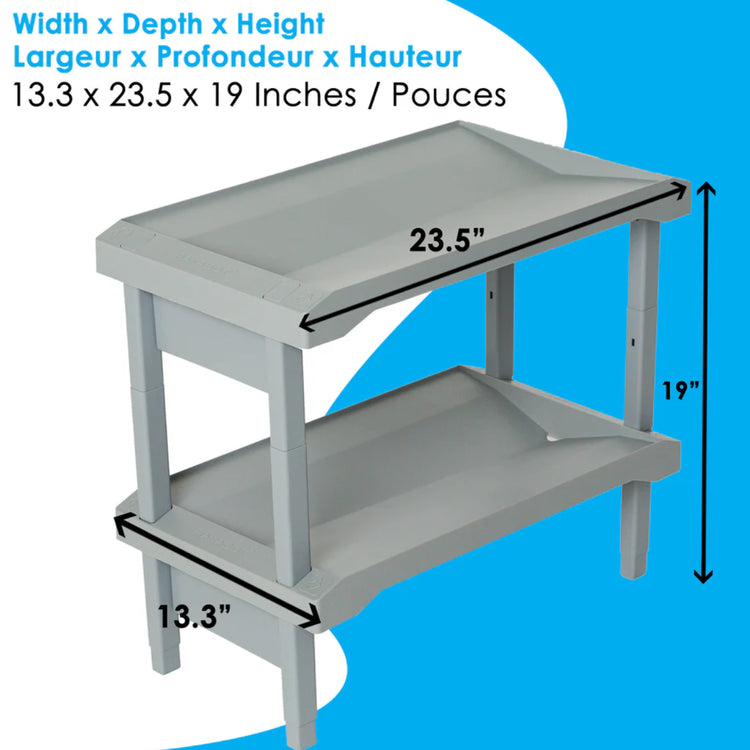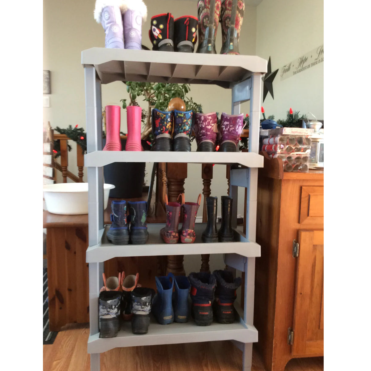 • Adjustable height spacing possible with interlocking posts. 12.7cm (5.0") for summer shoes and 35.6cm (14.0") for winter boots